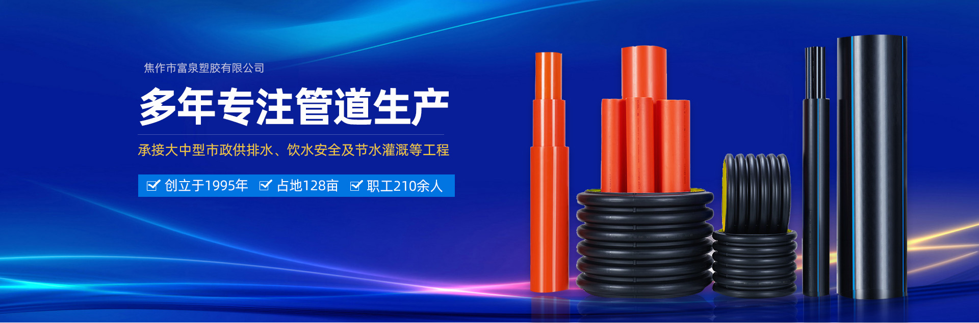 焦作市富泉塑胶有限公司,创立于1995年,是一家集研发、设计、生产、销售为一体的大型管材企业。公司位于太极故里、黄河之滨一一河南焦作温县。公司占地128亩,现有职工210余人,其中具有中技术职称的19人。生产、检验设备58台(套),包括PVC实壁管生产线11套、PE实壁管生产线12套、HDPE双壁波纹管生产线6套、PVC双壁波纹管生产线5套,检验设备14台(套)。主要产品有:Φ20mm-630mm、各种压力规格的PVCU、PVC-M、PE给水管材,PVC-U节水灌溉管材,HDPE燃气和矿用管材,DN200-800mm的HDPE、PVC双壁波纹管及各种喷灌、滴灌工程材料。承接大中型市政供排水、饮水安全及节水灌溉等工程。  富泉塑胶公司重视产品的质量、安全、环保和节能,在同行业中率先完成了“新华节水产品认证”,全方面通过OHSAS18001职业健康安全管理体系的一体化导入,并建立起规范的现代企业管理体系。公司以“质量”为先导,采用质量跟踪、多环节把关的方法,组建具有行业水准的企业技术检测中心,常年委托水利部节水灌溉设备检测中心、河南省产品质量监督检验院对产品跟踪检测,并由中国人民保险公司承保产品质量。公司连续多年被河南省水利厅确定为“安全饮水设备、节水灌溉设备”定点生产企业,并获得“中国名优产品”“质量、服务、信誉AAA企业”“河南省**产品”“河南省水利企业”“河南省守合同、重信用企业”等荣誉称号。  富泉塑胶公司坚持“用户为上”的服务理念,长期以来,全方面关注客户价值,不断提升服务水平。服务队伍常年为客户的产品设计、施工、安装提供合理的方案和全程细致、周到、**、快捷的技术服务。公司自成立以来,一直坚持以人为本的宗旨,塑造企业形象,并致力于新产品的开发,凭借雄厚的技术开发能力,先进的工艺制造流程,严格的质量管理保证体系,优良的售后服务网络,已成为河南省大的饮水、灌溉及排水管材设备制造商。产品畅销全国,而且还以公司雄厚的综合实力在业界中占据着重要的地位。